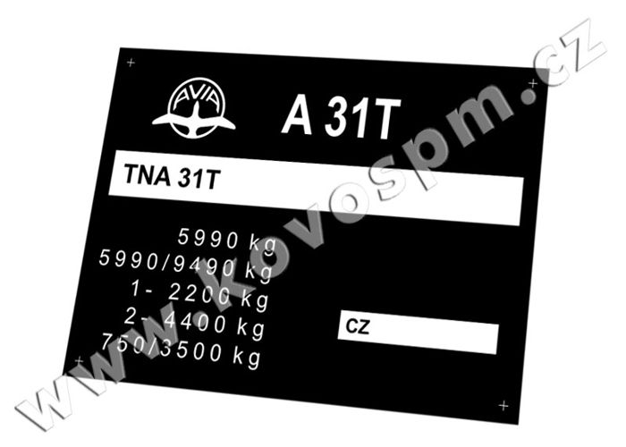 Avia A31T - Výrobní štítek410 CZK/ ks339 CZK bez DPH