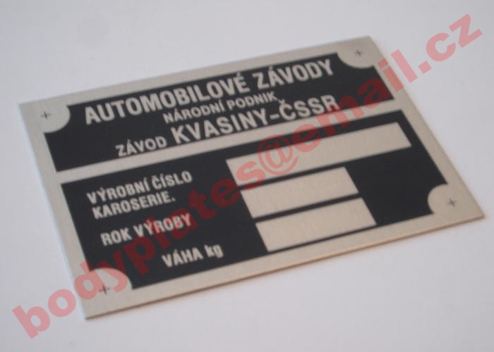 - Škoda karoserie KVASINY ČSSR - Výrobní štítek
